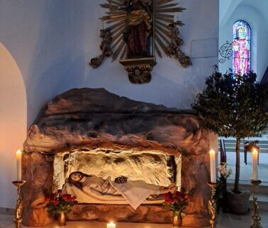 Das Heilige Grab, stellt die Geschehnisse der Ostertage dar. In mehreren Kirchen besteht die Tradition, nach der Feier der Karfreitagsliturgie, den Korpus des verstorbenen Herrn, zur Verehrung durch die Gläubigen, ins Heilige Grab zu legen. Bereits zum vierten Mal gestaltet das Seelsorgeteam der Pfarrei Erstfeld, gemeinsam mit weiteren freiwilligen Helfer:innen, in der Pfarrkirche Erstfeld ein heiliges Grab.